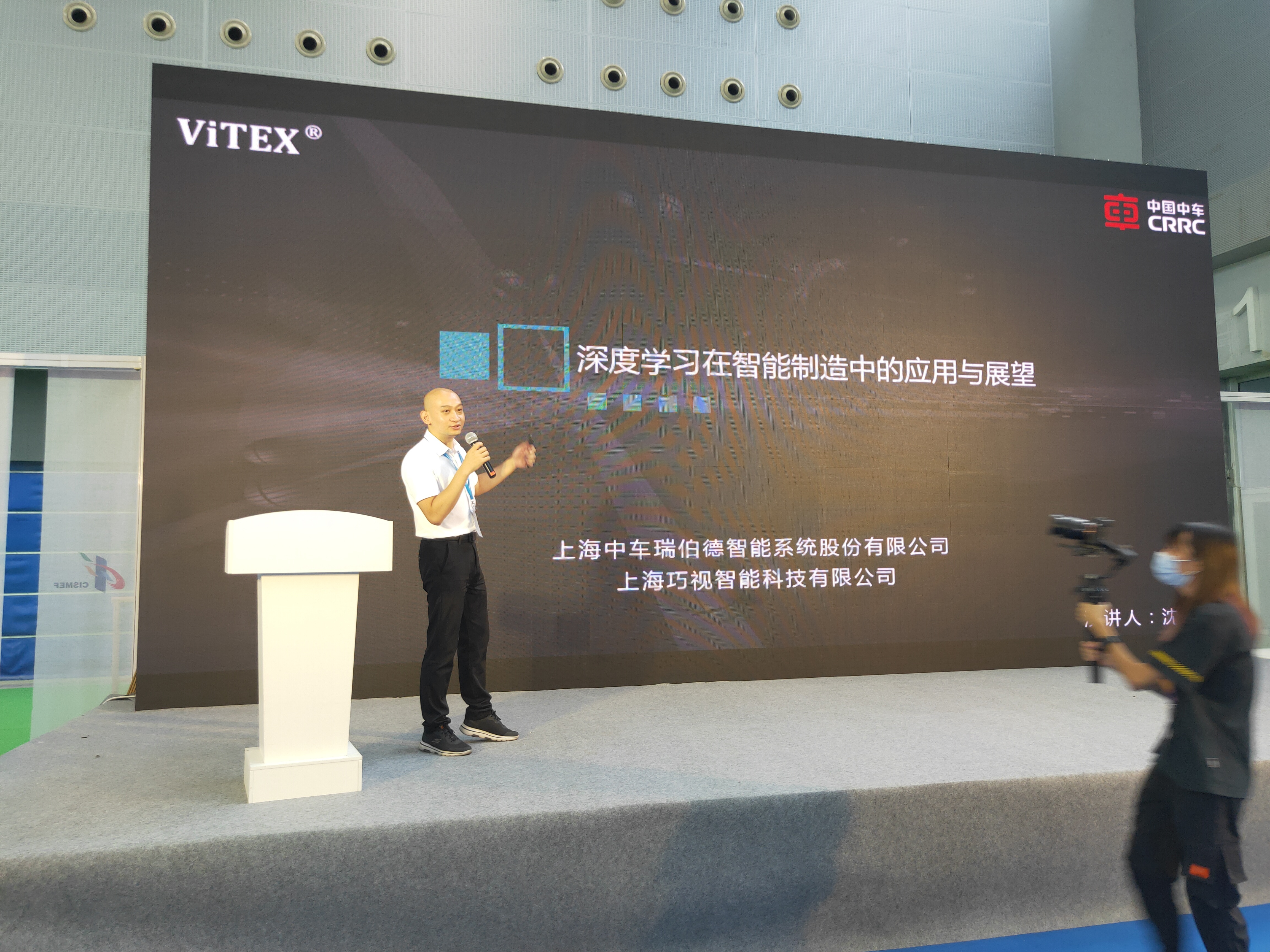 除了产品展示之外,上海中车瑞伯德还作为特邀嘉宾,出席了中博会的专题活动“装备制造行业企业数字化技术应用供需交流对接活动”,在活动中发表了题为“深度学习在智能制造中的应用与展望”专题介绍,详细介绍了公司在人工智能深度学习方面的探索和应用,获得了现场参会嘉宾的积极反响,现场气氛十分热烈。